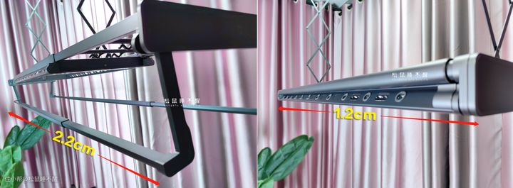 “米家 1S”和Pro一样都是纤薄款,稍作隐藏(嵌入式安装),就会大幅弱化视觉存在感,和天花板融为一体。 这款晾晒量更大,有38个防风挂孔,2根晾被杆,两头同样可以伸缩50cm,作为母婴晾晒区,挂钩设计了32个。