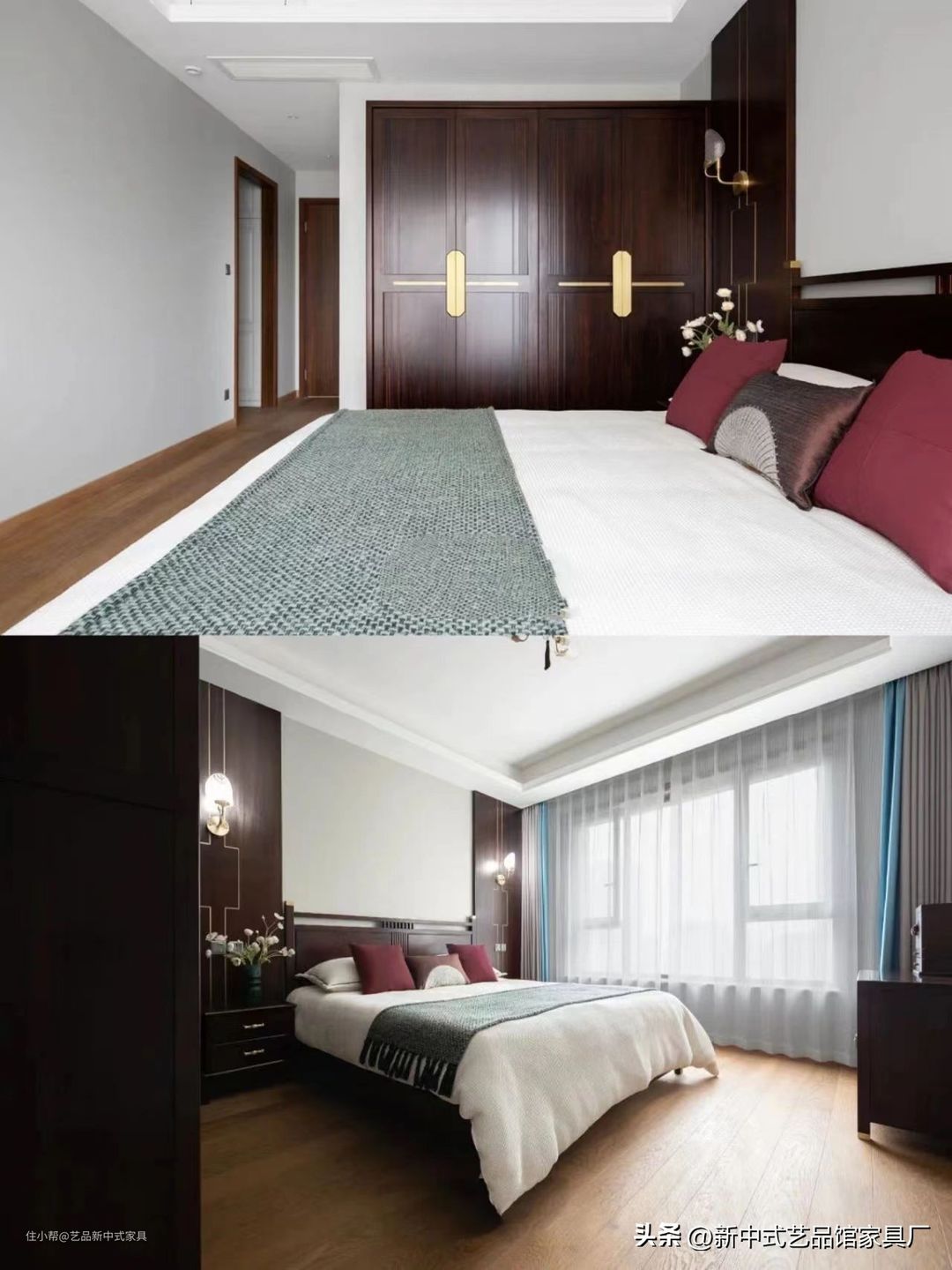 卧榻之侧,白覆黑木,素雅之间,古朴之风尽显;床头柜设计别致,新中式的典雅与卧室浑然一体,蓝色台布点缀其间,如清泉涌动,赋予空间灵动之感;画作装点于墙面,传统山水跃然纸上,与家具相映成趣,传统文化内涵为卧室注入灵魂,中国风韵尽显。色调以浅色为主,营造出宁静舒适的氛围。