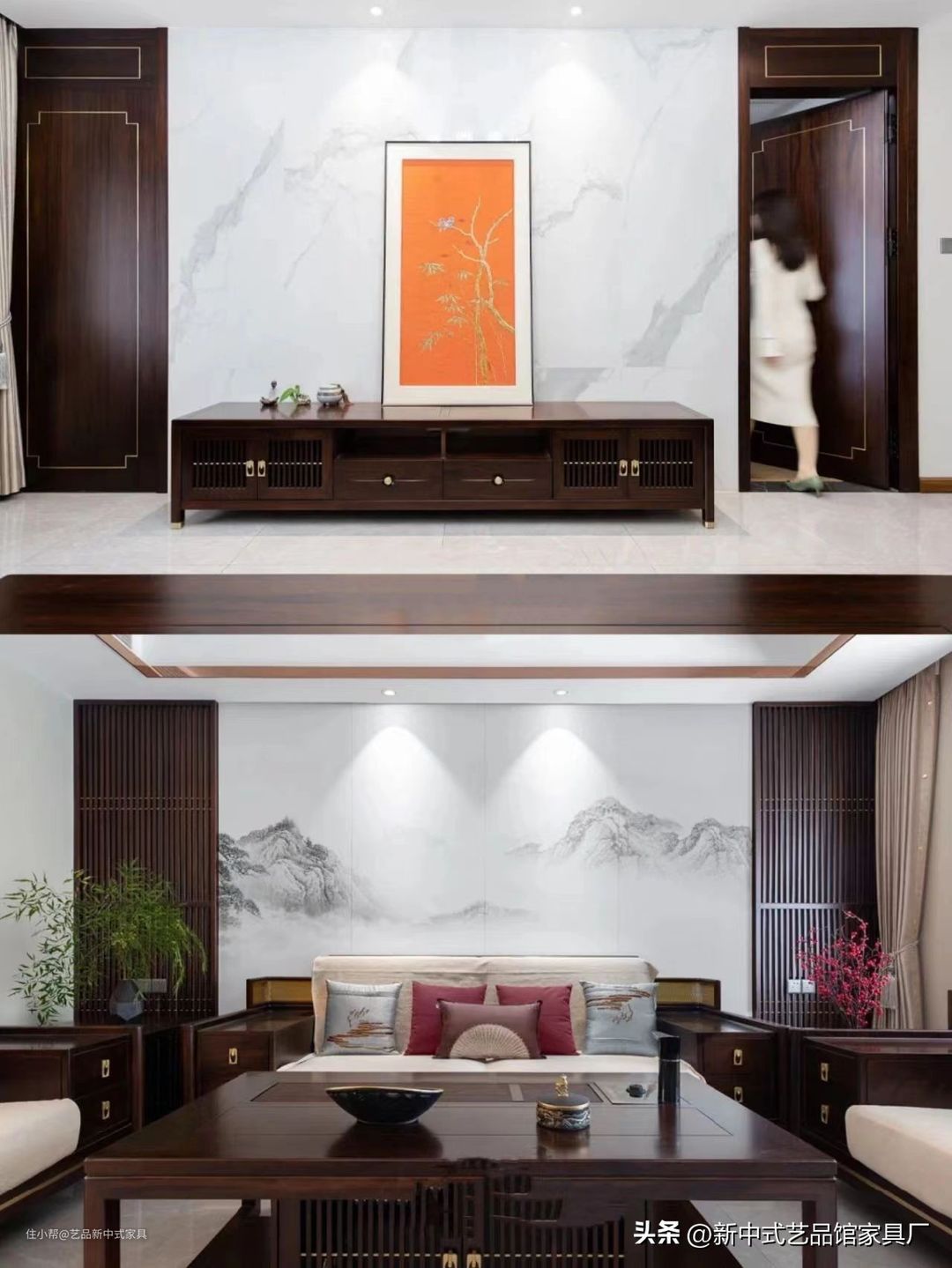 新中式客厅的色调以浅色为主,给人一种清新、明亮的氛围,同时,装饰和实木家具的搭配,也让整个空间更加时尚、高贵而不失文化韵味;在这个新中式客厅中,可以感受到中国传统文化的深厚底蕴和现代设计的精致优雅的完美结合。