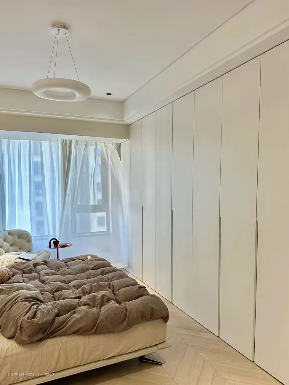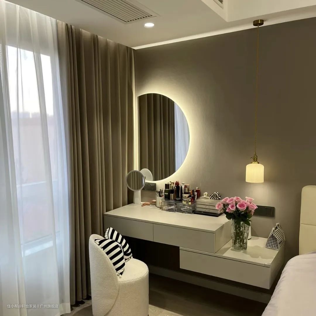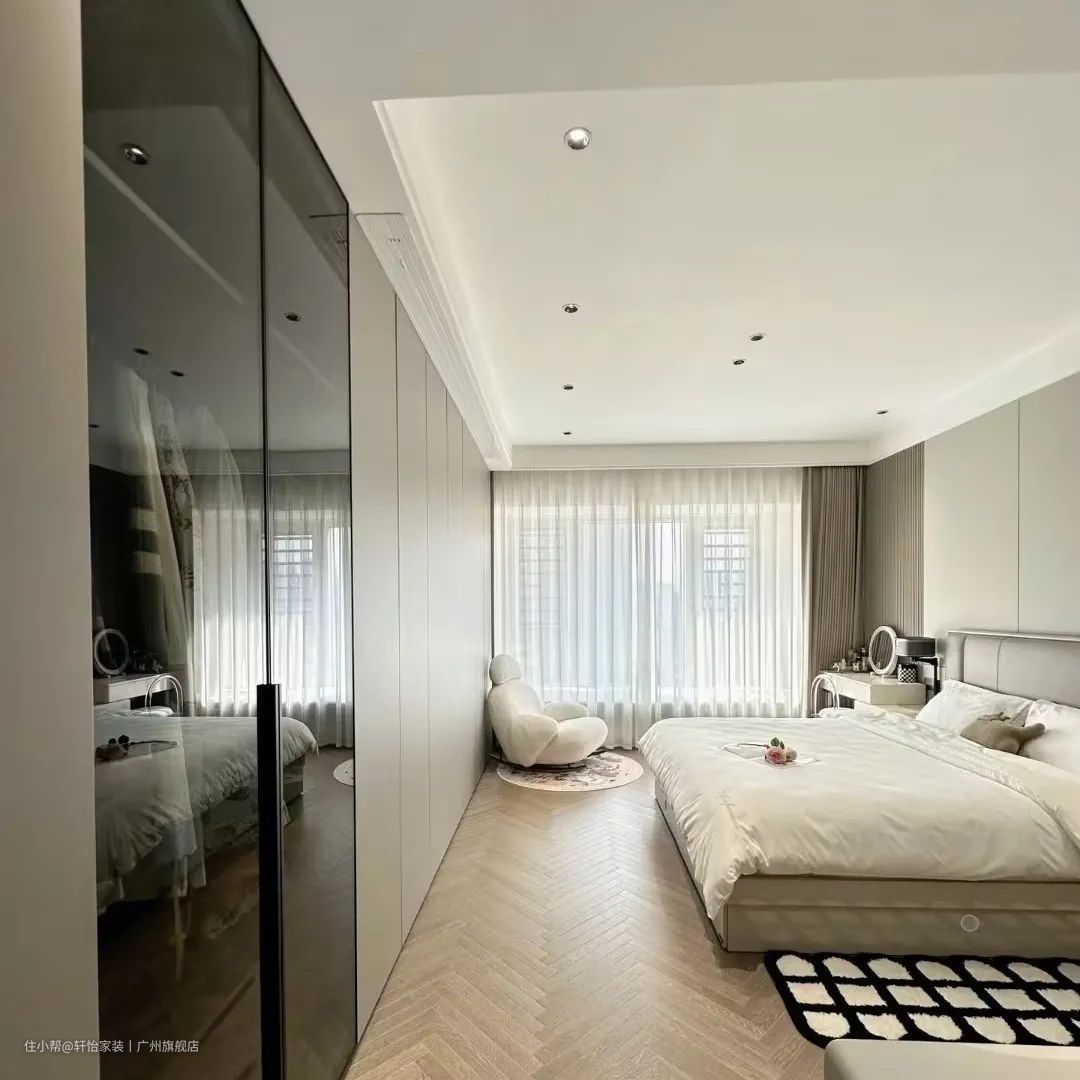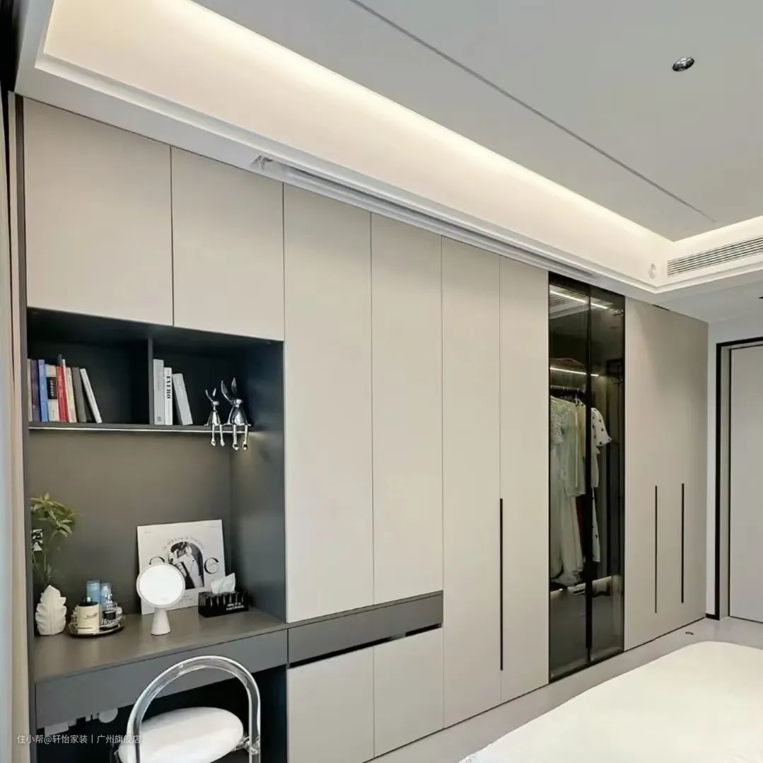 若是房屋房间宽超过4米,就可以考虑做一个小型步入式衣帽间,还能拥有独立梳妆台。