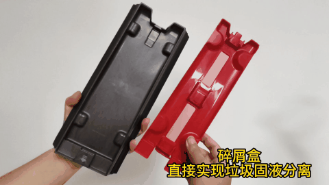 先把碎屑盒取下来,里面的固体垃圾倒掉以后直接冲洗就好: