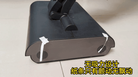 但是戴森WashG1不一样。看,这是清洁的过程中,贴在机身上的小纸条只有随着洗地机前进微微颤动,但是丝毫没有被吹起的迹象: