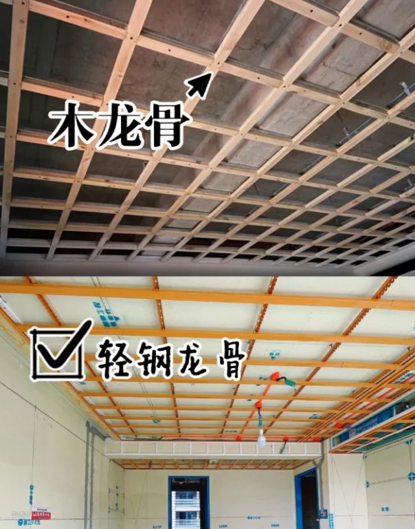 里讨论的吊顶材料是指扣板的材料,所有的吊顶都是需要安装龙骨框架,然后在龙骨框架上安装上PVC、石膏板、铝扣板等各种材料。龙骨有轻钢龙骨、木龙骨等的区分。