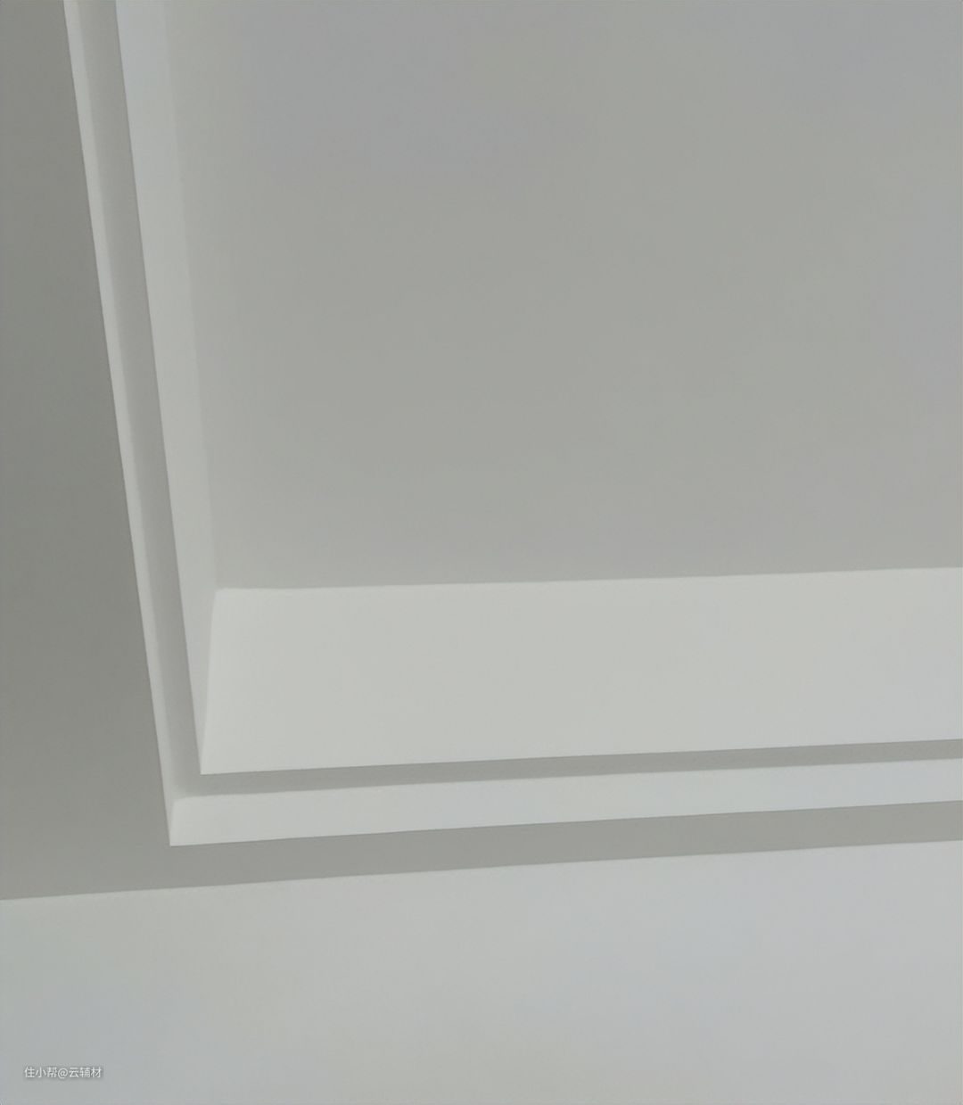 以石膏板为基础造型,在两层石膏板之间设计出高度差,垂直表面形成像双眼皮一样的褶皱,增加空间层次感。