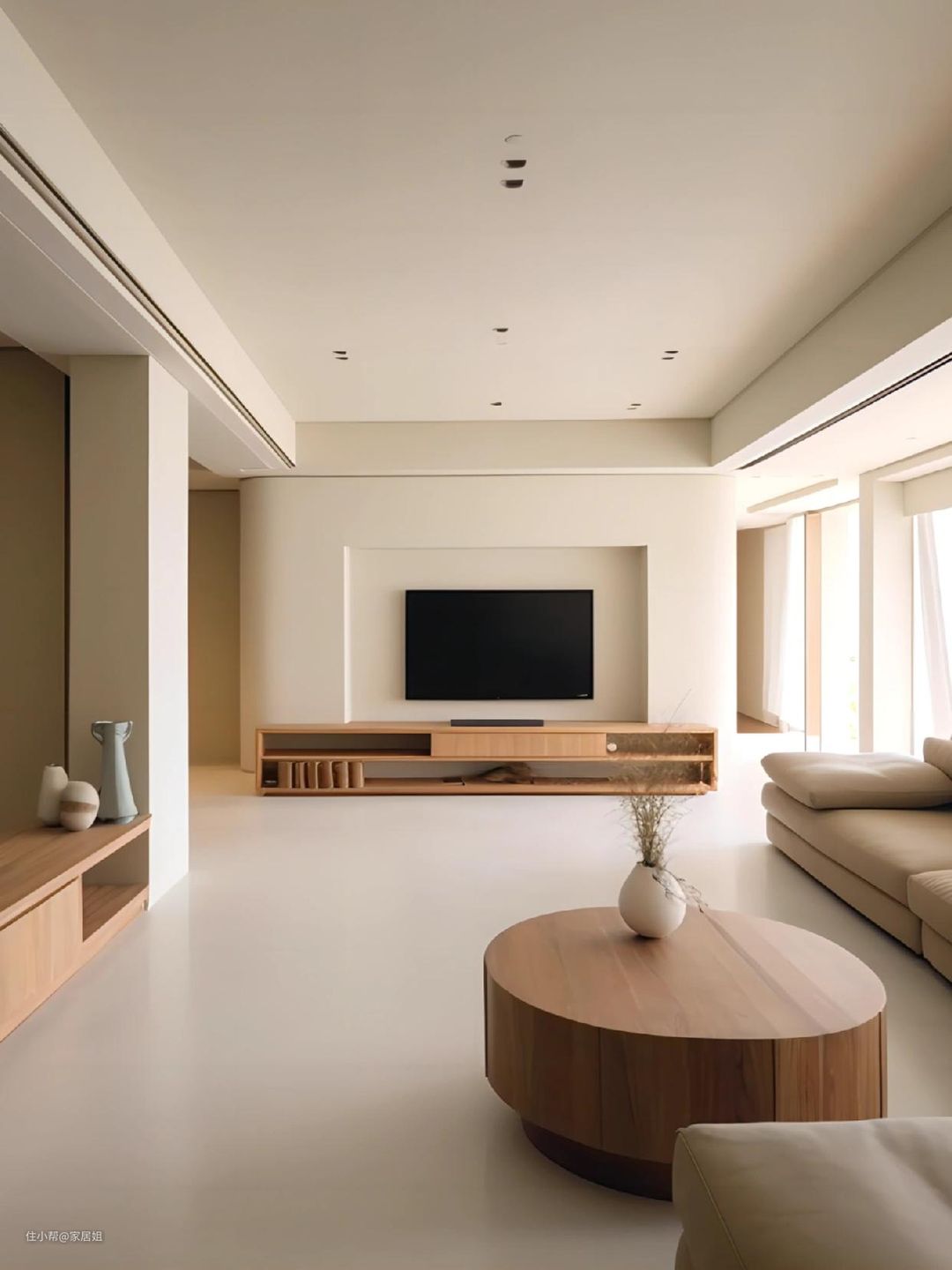 微水泥最好的平替是柔光砖,地面通铺大块柔光砖,做完同色美缝后,也可以做到浑然一体,无缝效果!
