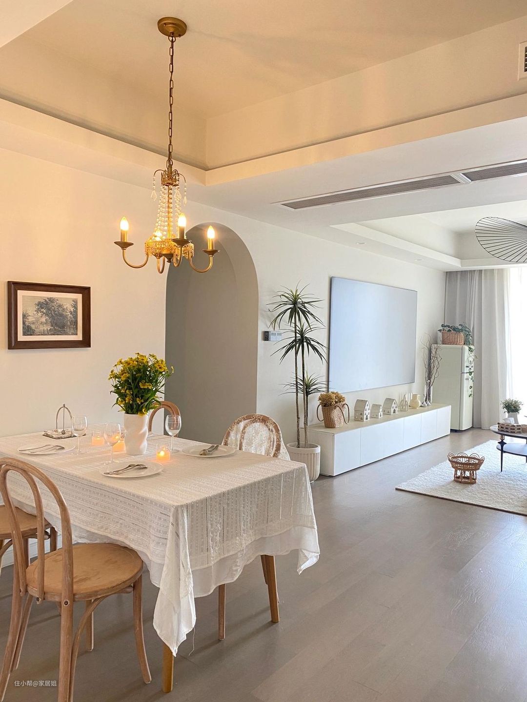 如果觉得大白墙太单调寡淡了,可以用挂画来装饰,一幅有艺术感的画作更能提升空间的品味。
