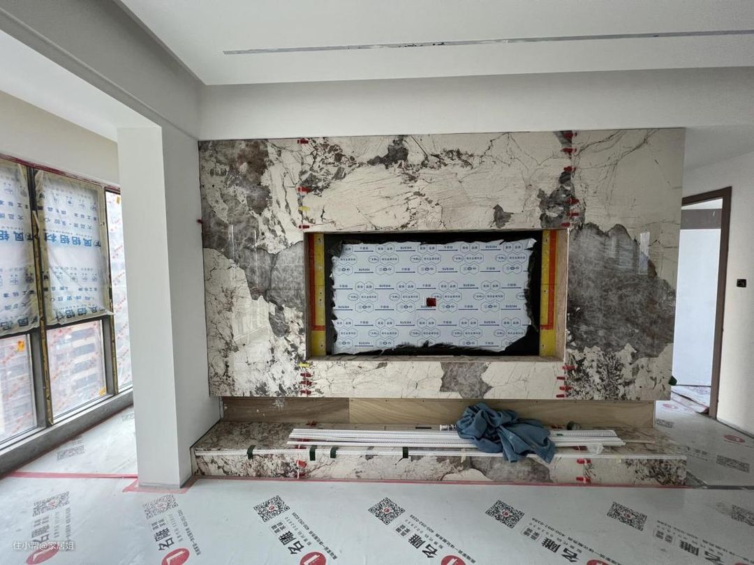 电视背景墙为了追求高大上的感觉,用了岩板上墙,觉得大气又好打理。结果,做出来太花哨了,又花又显脏,直接崩溃了!