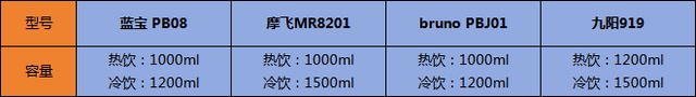 - 九阳919:1500ml冷饮上限;1200ml热饮上限;