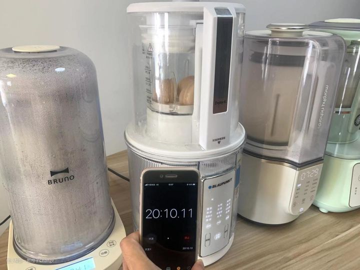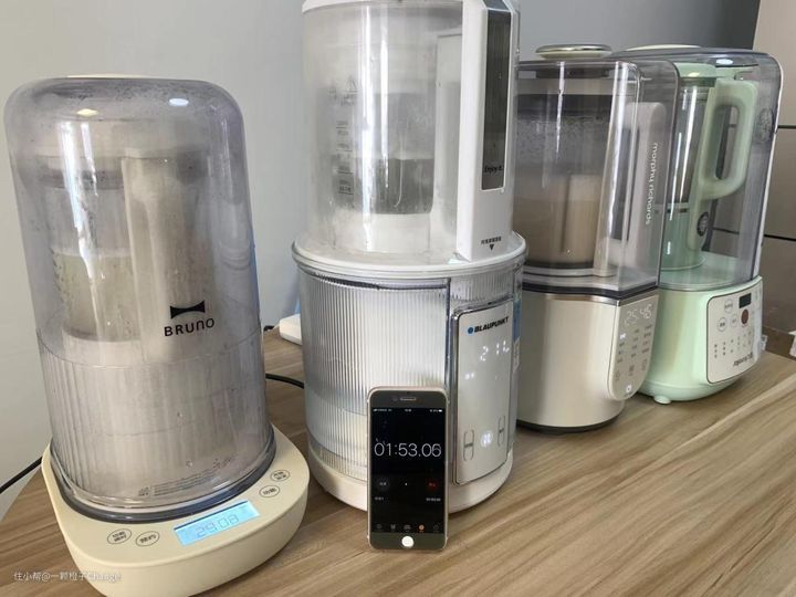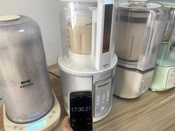 Bruno、摩飞破壁机制作豆浆都要30分钟,九阳破壁机制作豆浆需要40分钟,而蓝宝蒸汽破壁机制作完成仅需15分钟就制作完成了。