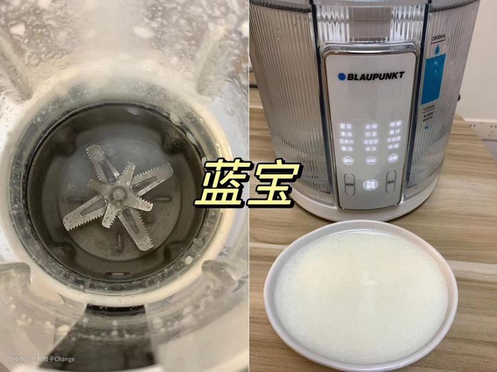 很清楚可以看出蓝宝蒸汽破壁机通过高温自清洁的效果非常明显,在过程中高温杀菌除湿,因为是0涂层的设计,最后清洗干净如新一般。
