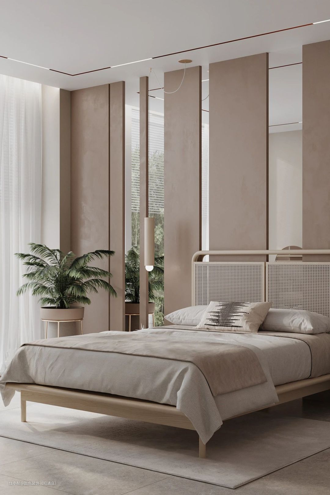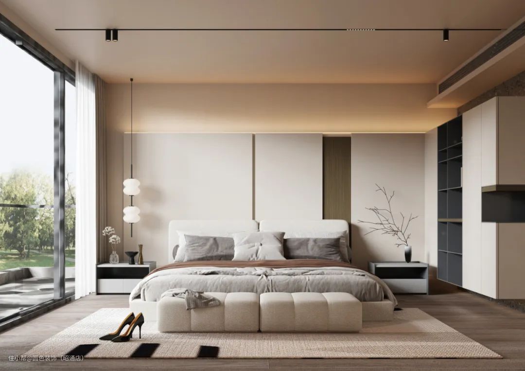 奶油风的卧室剔除了大部分过于鲜亮的色彩,打造一个静谧又让人放松的入睡氛围感