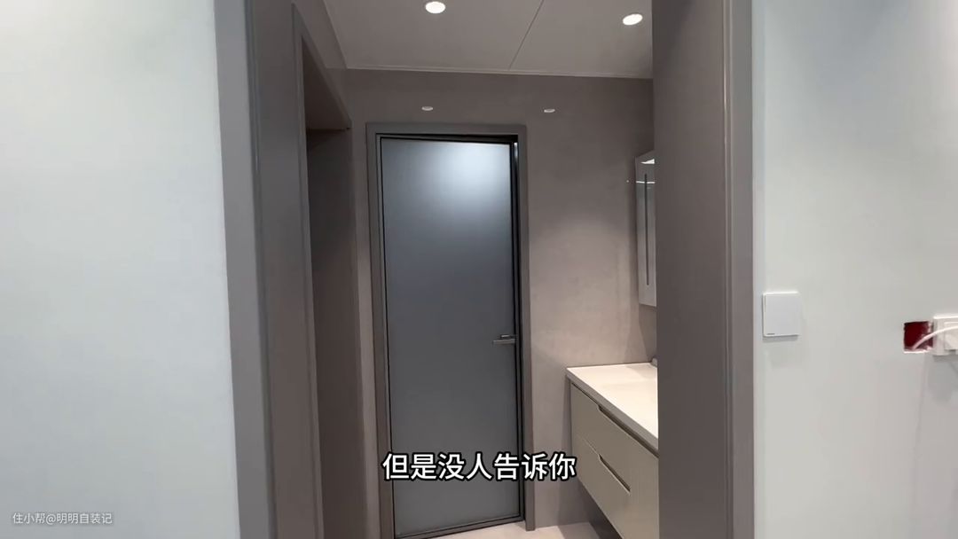 还有也没人告诉你,单包套从里面看着很廉价,当然我也不推荐双包套,因为墙如果太厚双包套会显得很厚重,而且会距离马桶太近容易透人影。到底做什么又不怕掉砖,又有双包套的效果,就做我这种双包套外平内开,这将是未来的主流。因为双包套它是包裹住这墙的,侧面的砖也不怕掉下来,而且从里面看还是包套的效果。从外面看还是单包套的简约美感。