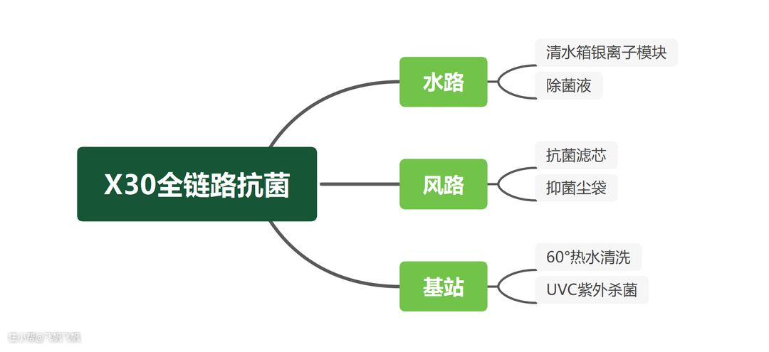 X30从水路、风路、与基站三方面都着手解决关于细菌滋生的问题,从而实现了真正的全链路抗菌。