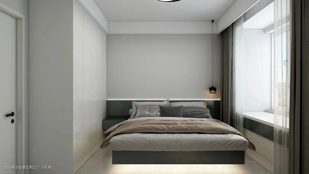主卧做的悬浮床,半墙床头内嵌灯带,好看!