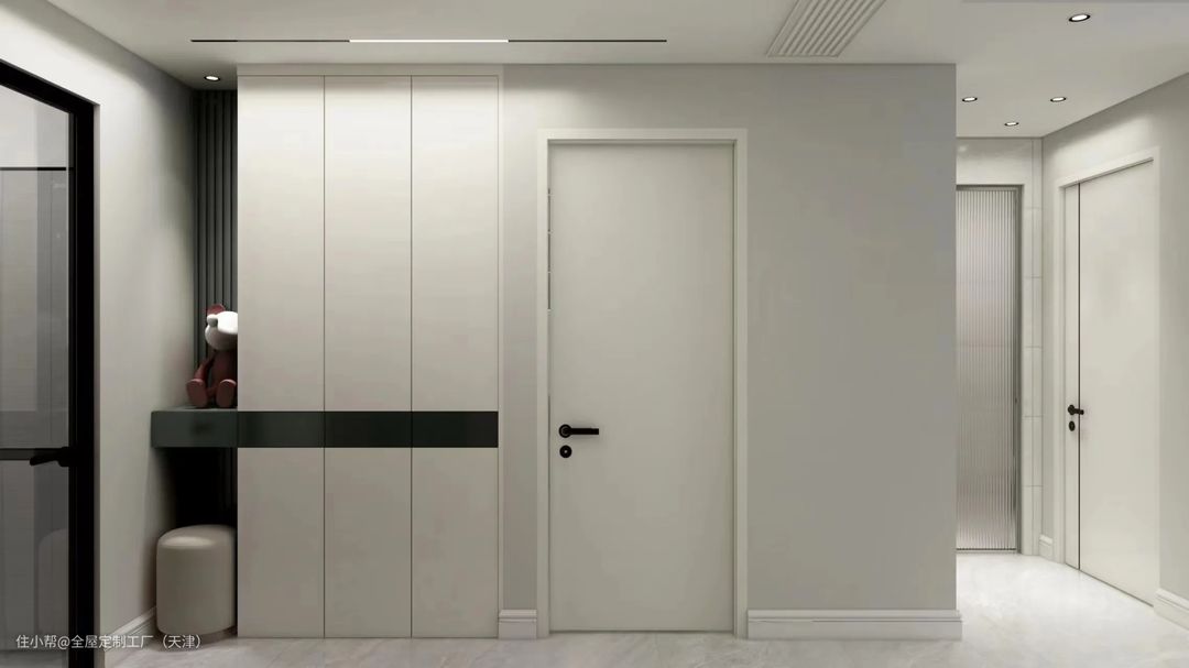 入户鞋柜,留有换鞋凳,坐着换鞋更舒服,适合老人孩子,上方摆件或者放上花,回到家中顿觉舒适,中间抽屉黑色穿插,收纳纸巾等出门小物件更实用,上方感应灯回家再也不用摸黑。