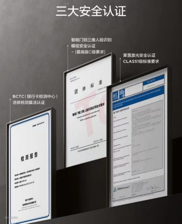 其3D人脸识别不仅全家适用,而且还与专业机构卢深视联合定制识别方案,也通过了银行卡检测中心BCTC权威机构等三大安全认证,其安全性能有效提高13.25倍。