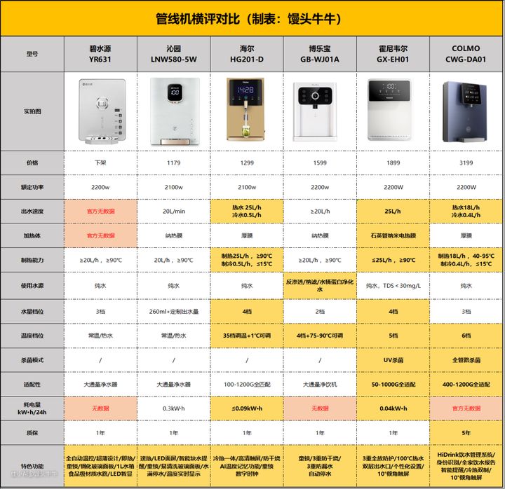 这次实测从800-4000左右价格的管线机中,挑选出了几款专做净水器材的品牌机,将资料整理成了以下的表格,供大家参考。