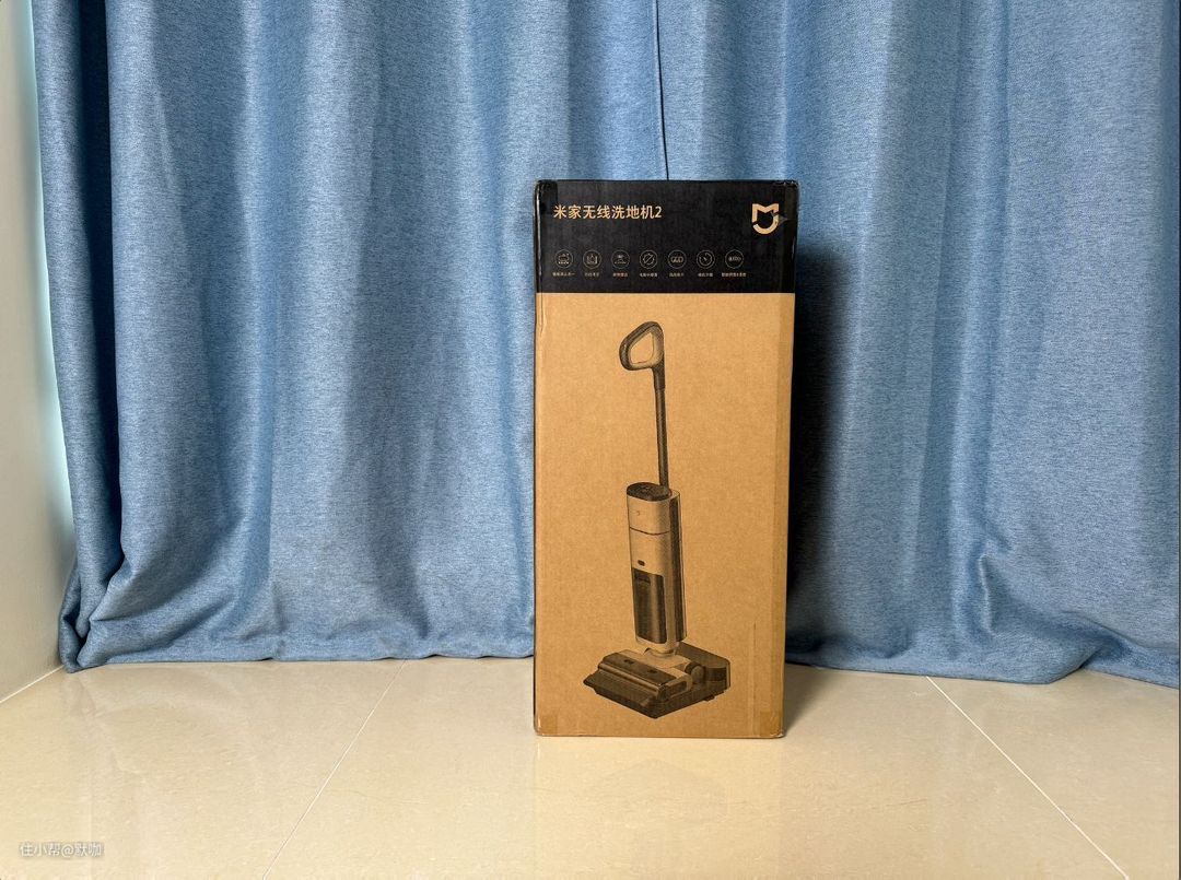 每次入手新东西,都习惯先拍几张开箱照,一个是为了以防产品有问题需要退换货而没有开箱图,另一个当然就是为了写文章的时候有图可用啦。小米无线洗地机2的外包装中规中矩,长方体包装,正面上方是型号名称以及主要功能标识,下面就是扫地机的产品图。