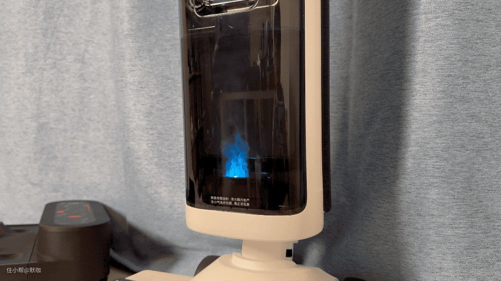 洗地机整体以白色为主,清水桶、污水桶和滚刷部分则是黑色,摆放在客厅墙角或者是靠墙都非常百搭。