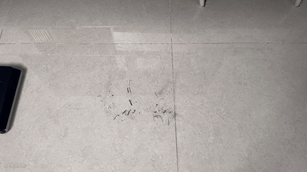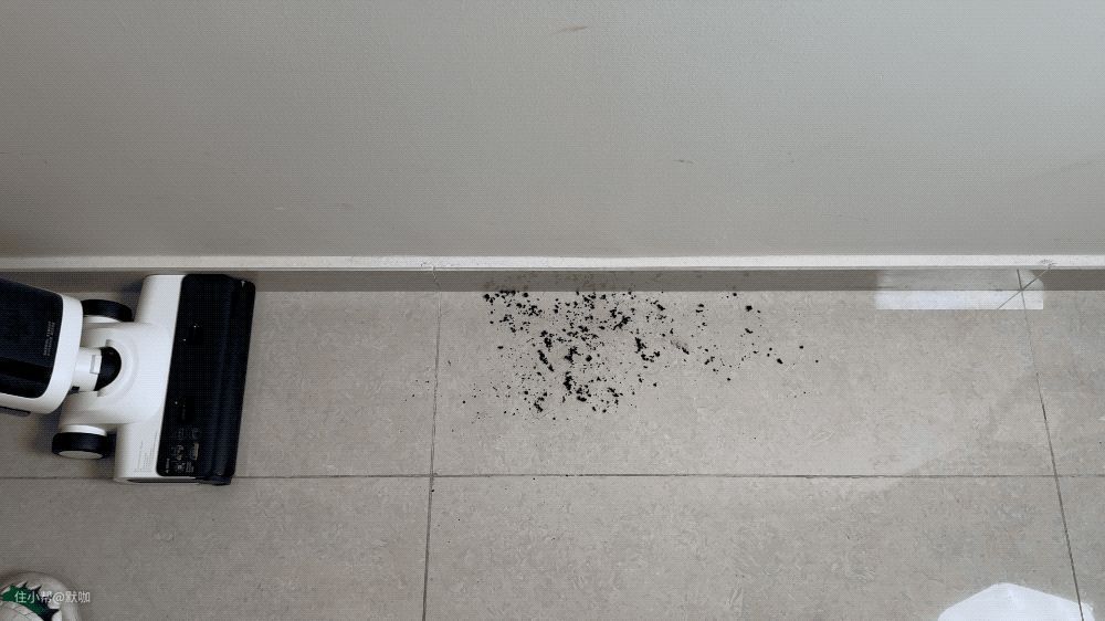 先来看它在自动模式下的吸力表现,现在家里面每天都做清洁的话其实灰尘垃圾都会偏少,但是挡不住台风天会把阳台上那些盆栽的泥巴落叶吹进来,所以取了一些进来模拟天气变化下的室内情况,小米无线洗地机2可以轻松通过86500转的高速马达产生的大吸力把它们吸的一干二净。