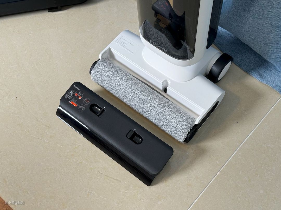 小米无线洗地机2的组装非常简单,就是把手部分和主机连接,然后安装好滚刷就能使用。