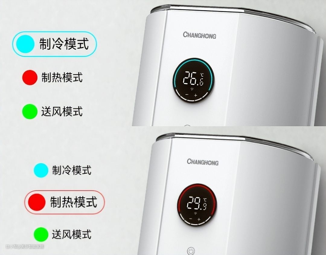 智能化时代不支持智能设备控制产品是很low的,所以熊猫懒二代除了使用物理遥控器之外,也支持智能手机操控且无需下载app,微信小程序搜索“长虹空调”连接即可,操控体验更加便利。但也不要忽视智慧眼的功能,空调工作状态当然是机器的显示屏直观方便。熊猫懒二代控制器采用无极变速+数字遥控方案,能调节出0.1度的精微温度。智慧眼则极致发挥了它的显示空间,可通过上半部环形灯带的色彩知道空调当前的工作模式。蓝色制冷,红色制热,绿色送风,紫色除湿,工作模式一目了然。