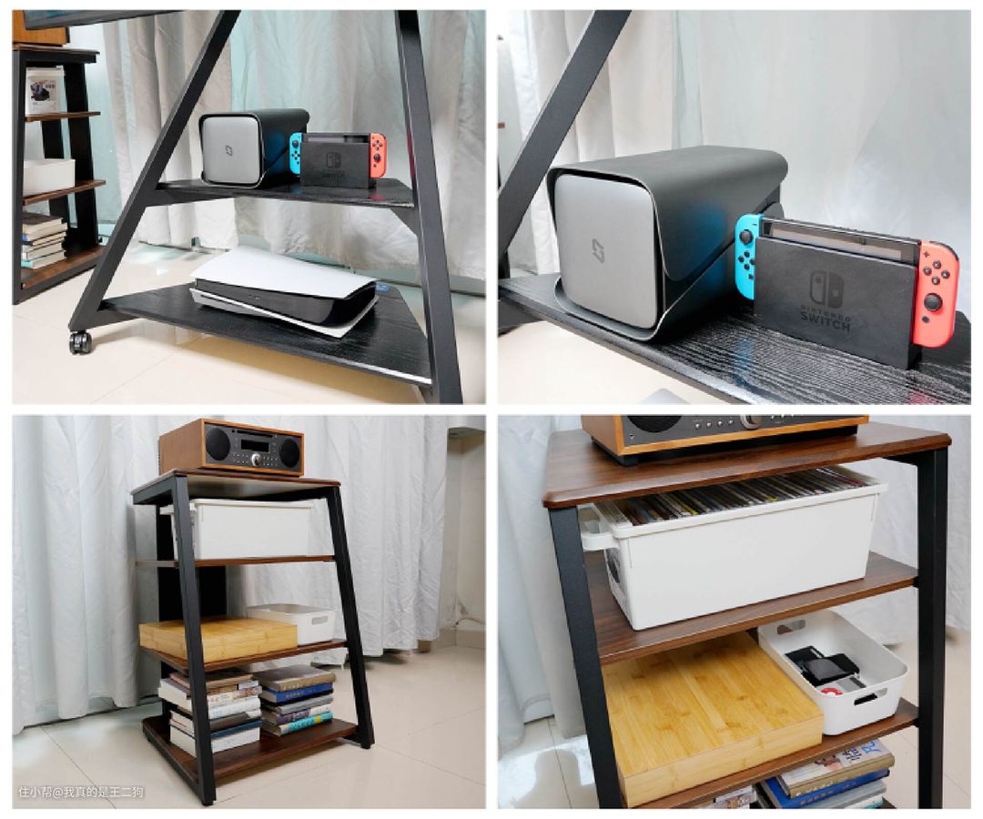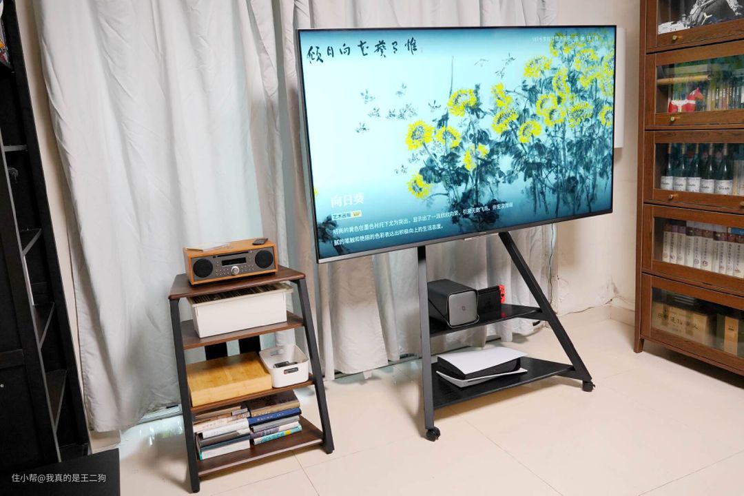 二狗家里早前换了个大电视,原来的电视柜比较小就变得不太好用。最近刚好也想把家里的影音设备简单的做下整合,收拾成一个专属的影音角落。因为是老房子在不想大改结构和增加太多花费的情况下,发现使用电视支架+影音柜的方案就比较适合我。电视柜可以独立使用,搭配滚轮还是随心满足自己的移动需求,带有专用的置物空间还能放下NAS、NS和PS5。影视柜可以搭配电视支架使用,也可以单独使用。拿来弄成一个音乐柜就蛮不错,放置自己的桌面音箱、便携HIFI设备和珍藏CD都是不错的选择,甚至还能放下不少图书。