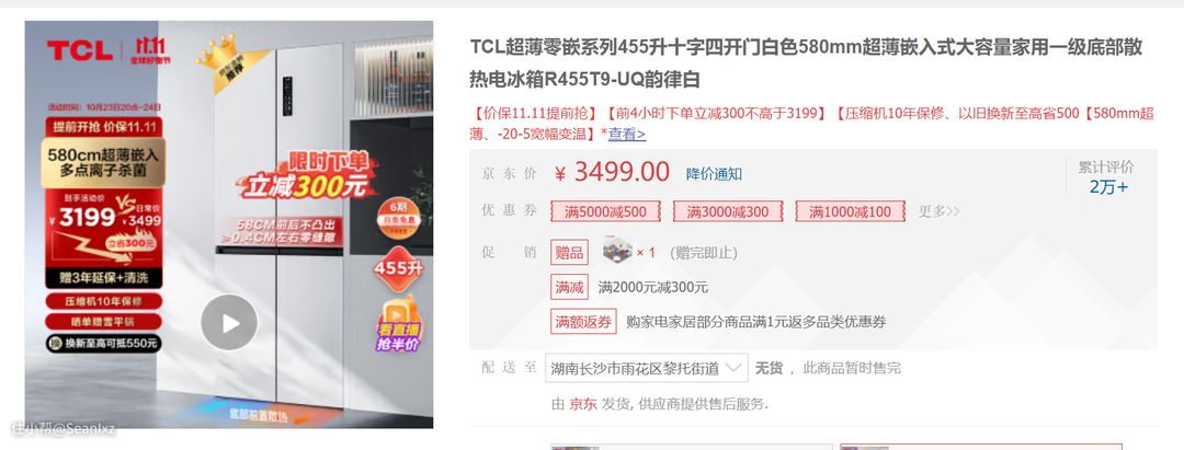特别最近接近双十一,活动多多,质价比满满。在某东购物平台上预售期(10.23-10.31)到手价仅3199,另外付20元定金还可在直播间抢5折特权,有需求的朋友都可以重点关注一下。