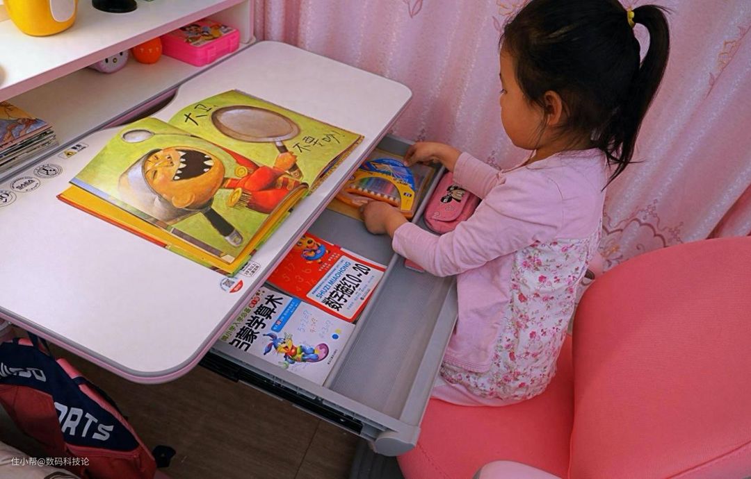 现在来看使用体验也不错,就是选的有点尺寸小了。现在孩子书多,有点放不下。所以后来就把落地书架给女儿专用了。西昊SIHOO儿童学习桌椅的特点是一是桌椅都支持手动升降调节,支持110mm~170mm身高使用,也就是从小学用到高中也没问题。二是150kg大承重,重心设计很稳,不用担心倾倒。
