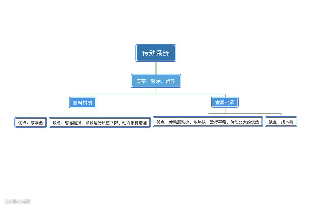 传统系统包括“皮带、轴承、传动齿轮,部分中低端厨师机因为成本问题,会使用塑料材质的配件,随着配件磨损,运行质感下降、动力损耗增加。