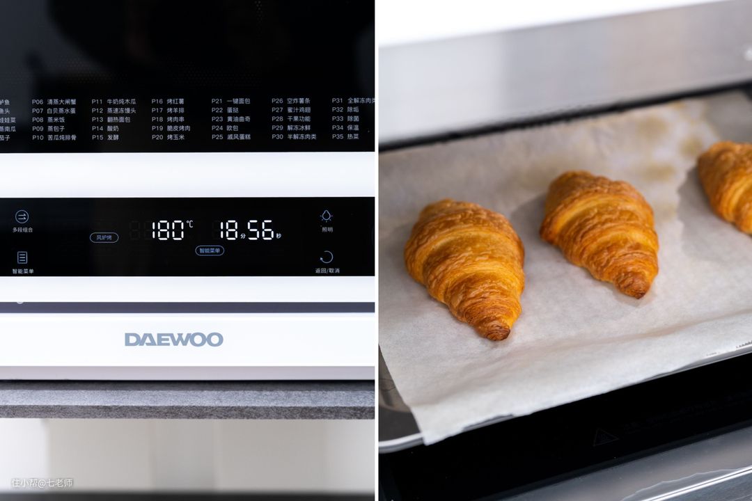 如果你和我一样喜欢吃面包的话,一定要试试大宇微蒸烤炸一体机自动菜单中的P21一键面包,将面团放入烤盘上之后,放入微蒸烤炸一体机,选择这个模式自动完成解冻、醒发、烘烤。