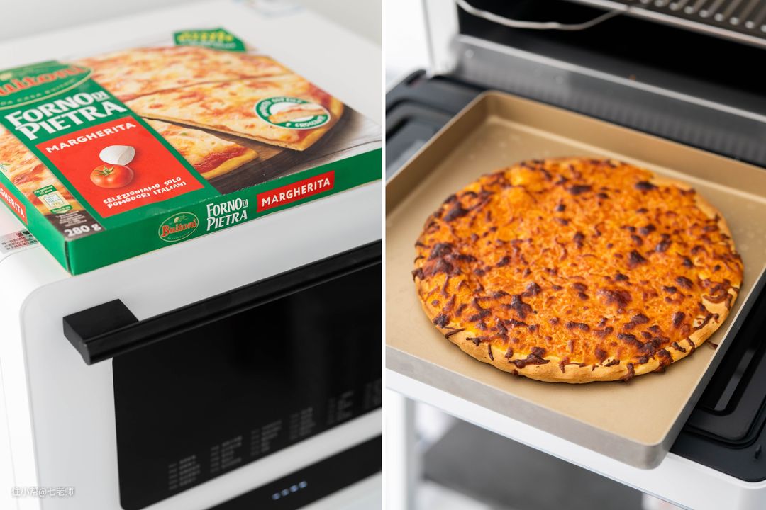 相比烘焙甜点,我主要使用大宇微蒸烤炸一体机的烘烤功能来烤披萨冻品。由于大宇微蒸烤炸一体机温控准确,所以我可以充分相信它,完全根据推荐温度和时间将披萨做成我喜欢的焦脆度。