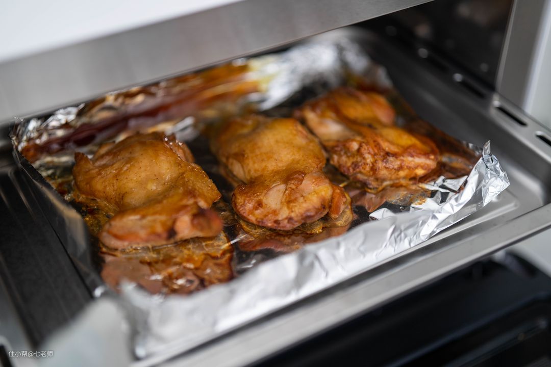 蒸汽+烘烤:有效避免烘烤时间过长造成食物表面过干,在制作肉类食物时,高温蒸汽快速渗透食物内部,蒸烤的鸡腿相比单烘烤更加外焦里嫩。