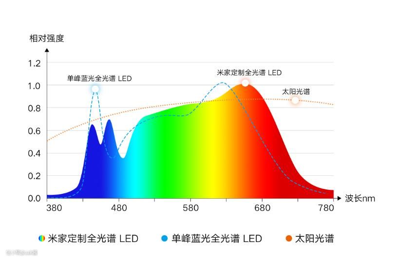 从光谱来看,米家立式学习灯的全光谱灯珠,出光也是非常接近太阳光谱,用了它之后,我们家客厅的室内光线也接近白天的光线,点亮的那一刻,感觉身心都舒畅了很多。