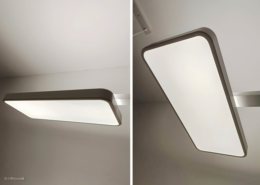 首先,吸顶灯发光面积比较大,照射范围广,如果在客厅或者卧室需要玩耍照明是不错的,但是距离台面较远,照明效果大打折扣,桌边看书就不行了。