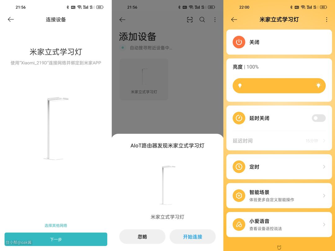 米家立式学习灯当然也可以使用米家APP,还支持小爱语音远程操控。