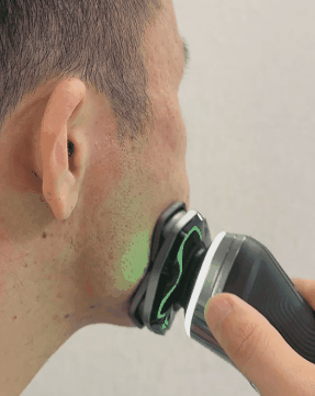 内置传感器以3000次/分钟高频感应剃须时的压力,并通过手柄上端的可视化压感光环,用不同颜色的光效实时反馈剃须压力,舒享专属个性化体验。绿色光环表示压力适合,红色光环表示压力过重,蓝色光环表示压力过轻,及时提醒使用者调整手部力度。