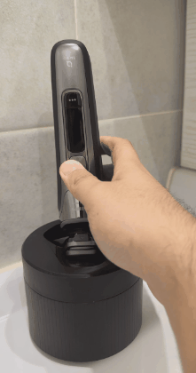 无线清洁舱的豪华配置,绝对能大大提升剃须刀的清洁维护效果。将剃须刀倒置于清洁舱上,可一键开启或自动识别开始清洁,无需插线充电,仅凭剃须刀自身电量,1分钟便可快速完成自清洁。