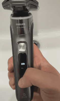 飞利浦9系剃须刀的手柄正面搭载一块智能UI显示屏,黑底白光,简约清晰地显示各种状态参数,令人一目了然。