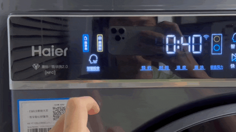 另外非常值得夸赞一下的还有它的操控方式。不得不说,海尔原创的「一屏智控」真的是神仙一般的存在,不弯腰直接操作洗衣机的体验实在是太好了 ▲