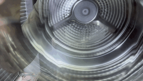 干衣机有个创新「贴壁烘」技术,可以充分抖散衣物,减少羊毛磨损。实际工作中,大概就是上图这个样子,整个毯子以非常蓬松的状态转动 ▲