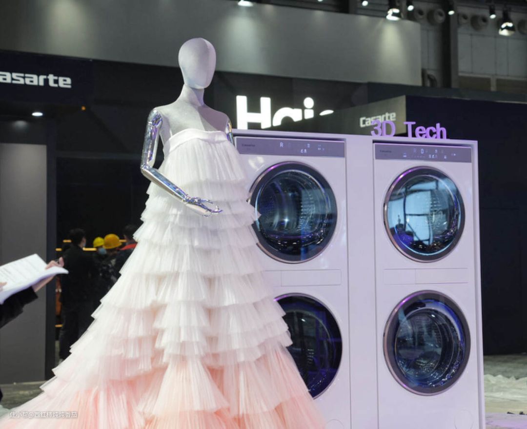 - ①海尔在这套机器上应用了3D透视烘干新技术,可以隔空检测衣物含水量,并且在现场进行了演示,围观的人超多;
