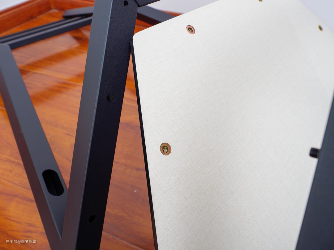 层板本身是做了预埋金属螺栓的,固定效果要比普通尖头的自攻螺丝好得多。这样整个支架的底座都被层板和快插结构件进行了双重锚定,装好后牢固得很,纹丝不晃。