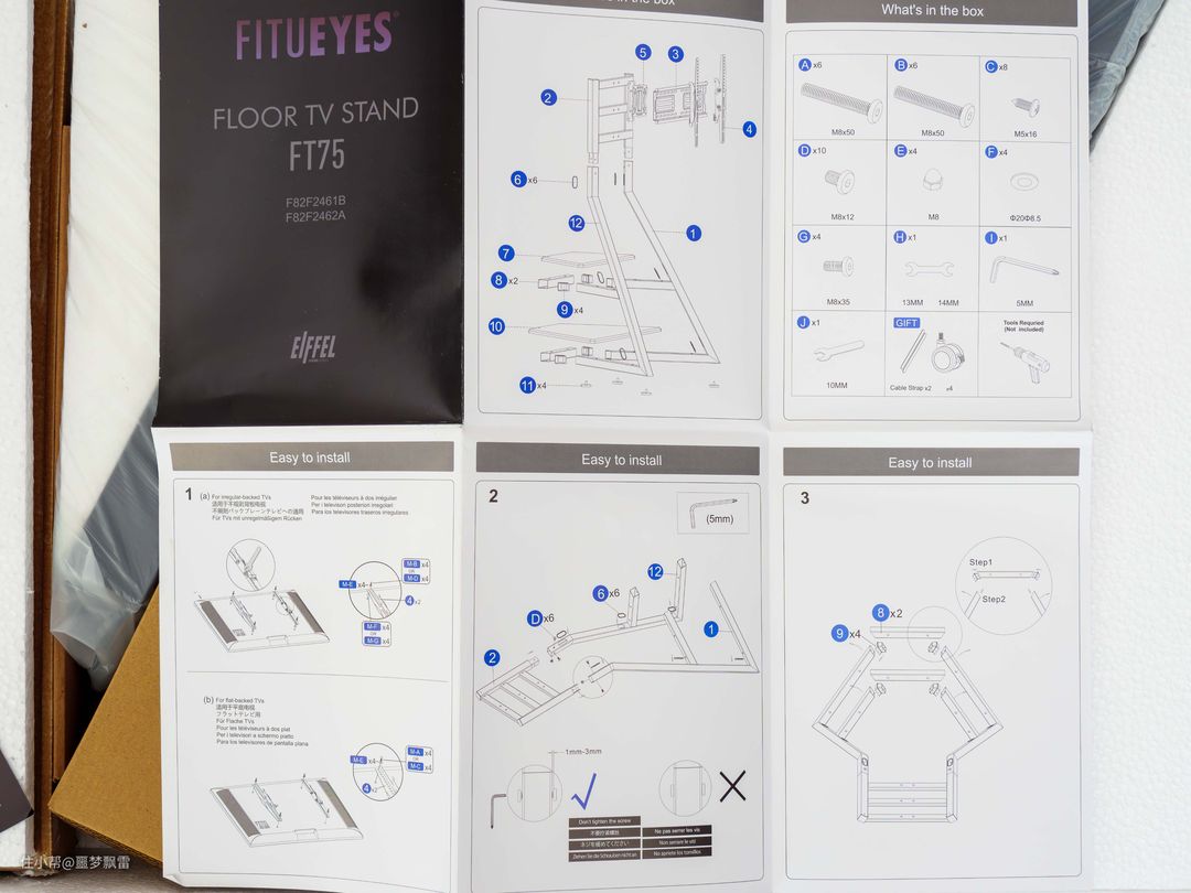 特悦视FITUEYES的这款落地式支架其实是附送了免费上门安装的服务来着,不过我一方面长时间没动手了有点手痒,另外还想给大家拍拍具体的细节,所以还是决定自行安装吧,反正落地式支架比挂墙支架好安装多了,不用打孔就是最大的利好。