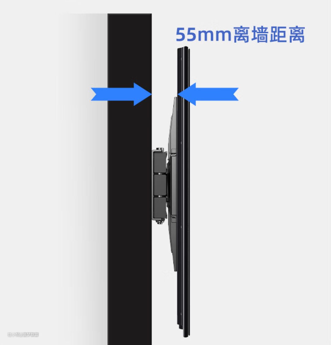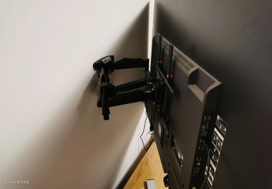 可调式挂架的缺点是结构复杂,同时贴墙距离不如固定式的挂架近,从侧面看过去不太美观。