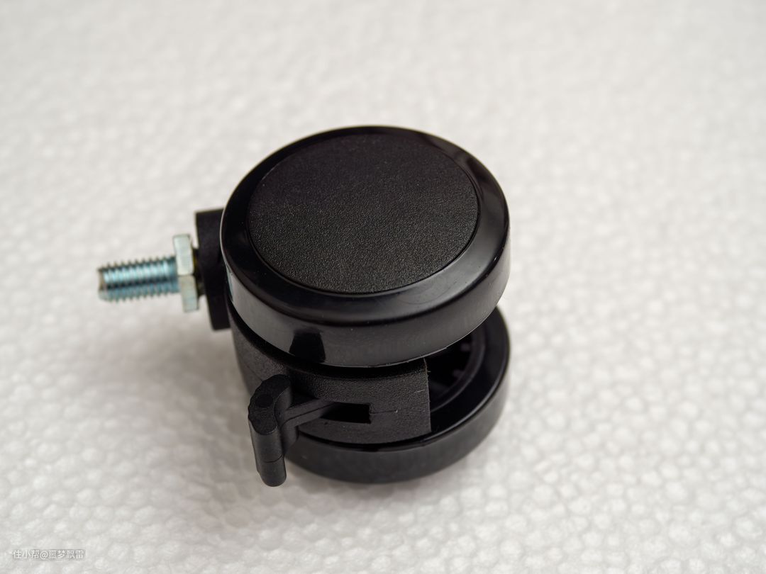 支架包装里附送了可锁止万向脚轮和可调高度的脚垫供选择,为了方便电视移动,这里我用的是脚轮,做工不错,轮子上覆盖了橡胶,移动的时候很稳定,没有杂音。