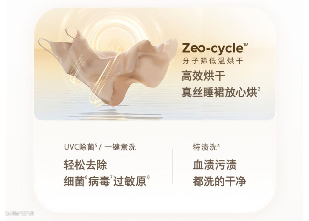 而且专为贴身衣物设计20种洗护程序,【内裤】【bra】【运动】【婴童】...你想要的它都有,除菌方面达到了母婴级洗衣机认证!