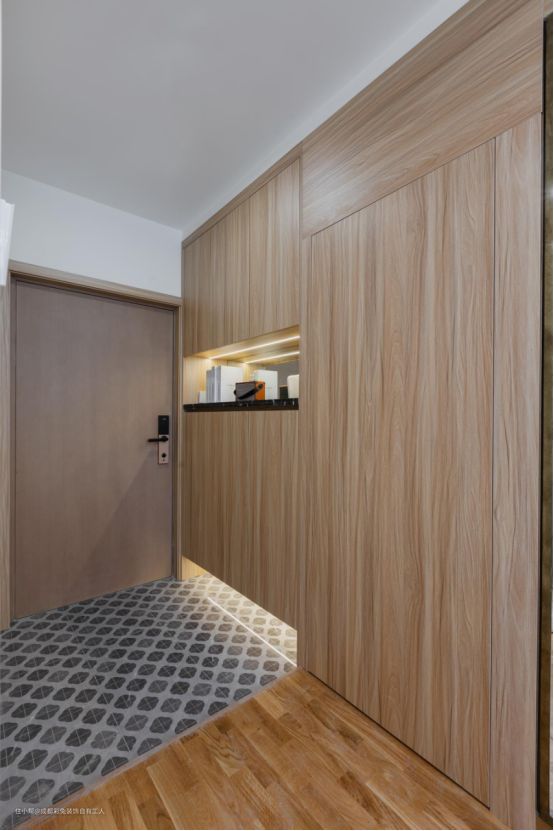除了硬装,软装也是玄关设计中不可忽视的一部分。根据整体风格的不同,可选择相应的地毯、挂帘、花瓶等软装元素,为玄关增添一抹温馨感。