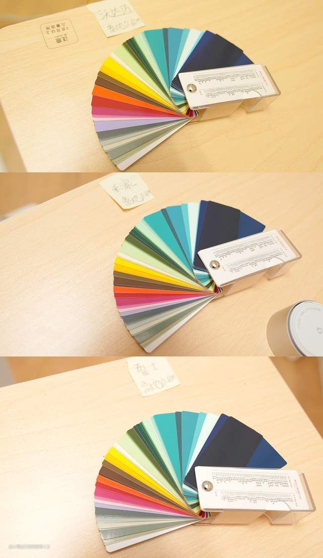 显色实拍对比:显色指数越好,色彩的过渡越自然,眼睛观看起来就更加舒适、省力。我准备了一叠色卡,下面将相机设置成固定白平衡和固定ISO,其他参数也都调整为固定。在同样的拍摄条件下,实际看一下三款灯具的显色表现。