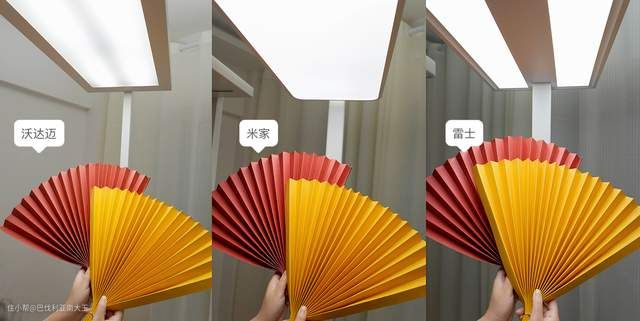 官方给出的数据沃达迈的显色指数CRI>80、米家显色指数Ra98、雷士显色指数Ra97。大家也可以通过实拍的色卡,自行感受一下。